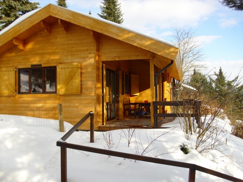 Het chalet beschikt over een ruime woonkamer met een houtkachel en een compleet ingerichte open keuken, welke voorzien is van een koel-vries combinatie, een oven, een elektrische kookplaat en een afwasmachine.